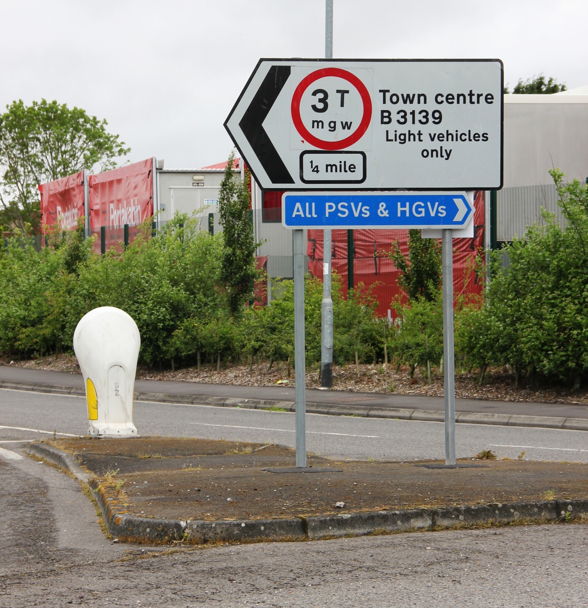 - The signs can include a logo showing a lorry with a red line through. This may be more effective, especially for foreign drivers